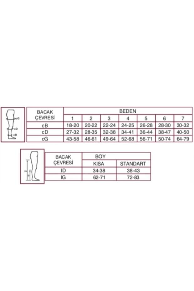 Orta Basınçlı (23 - 32 mmHg) Önemli:Varis çoraplarında hijyen koşulları gereği değişim yada iade yapılamamaktadır. Müşterilerimizin mağdur olmamaları için ölçü formundaki tabloya göre beden seçmelerini önemle rica ederiz. Lütfen ayak bileği ölçüsünü alt baldır ve üst baldır ölçüsünü sipariş vermeden önce mezurayla ölçün dilerseniz sipariş vermeden iletişime geçebilirsiniz... Ürünün genel özellikleri: Ts env 12718 çorabı standardına uygun olarak tasarlanmıştır. Kişiye özel yapılmış kadar bacağa uyum sağlayacak standart ölçü sistemine uygun üretilmiştir.