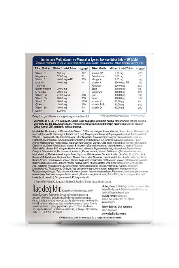 Vitamin C, D, A, B6, B12, Selenyum, Demir, Bakır bağışıklık sisteminin normal fonksiyonuna katkıda bulunur.
