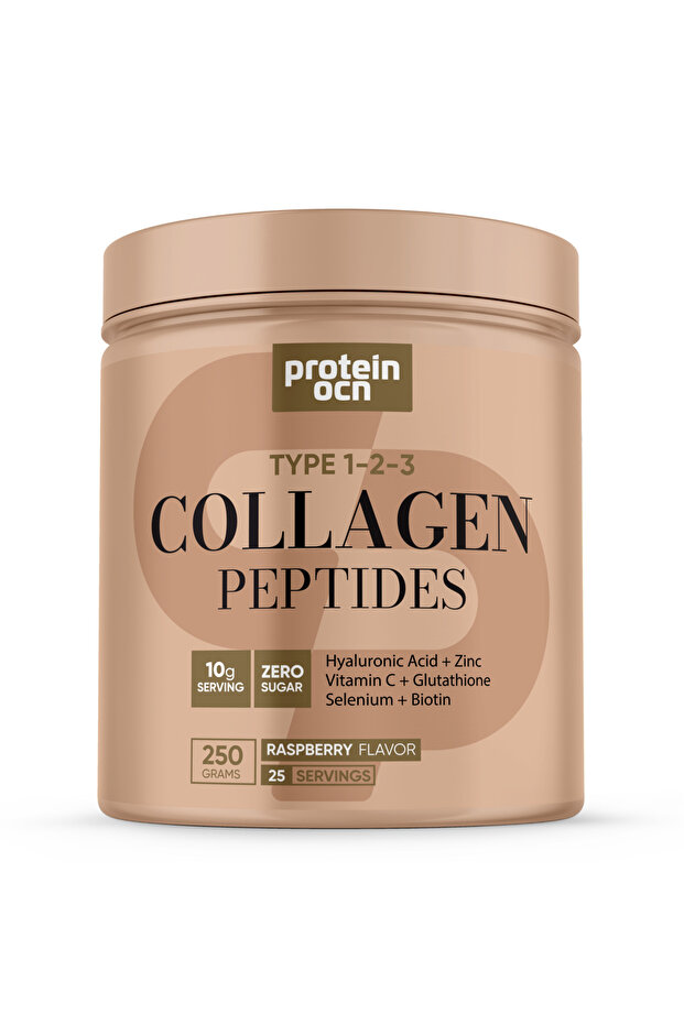 Proteinocean Collagen - Kolajen | Ahududu - 6 Vitamin İlaveli - Tip 1,2,3 - 250g 25 Servis