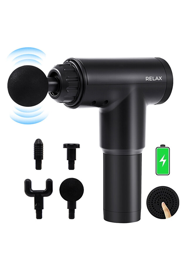 Relax Masaj Tabancası Sporcu Masaj Aleti 4 Başlıklı Şarjlı Titreşimli Sporcu Masaj Tabancası